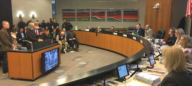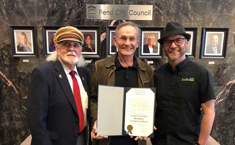the lectern, left to right: Robert Hager, Councilmember Jenny Brekhus